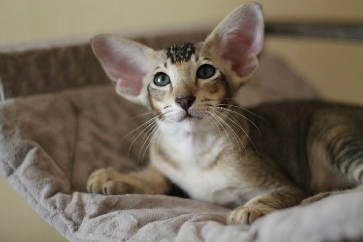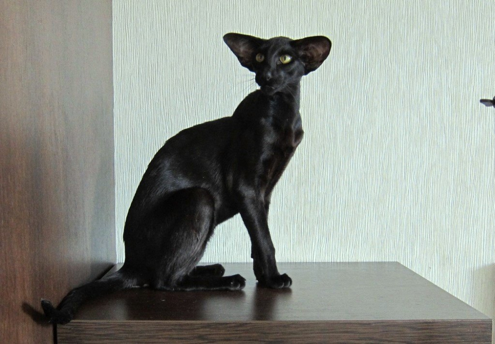 Одним из главных отличительных признаков ориентала являются его уши. По отношению к размеру головы кошки они выглядят достаточно массивно. Особенно это заметно в детском возрасте.