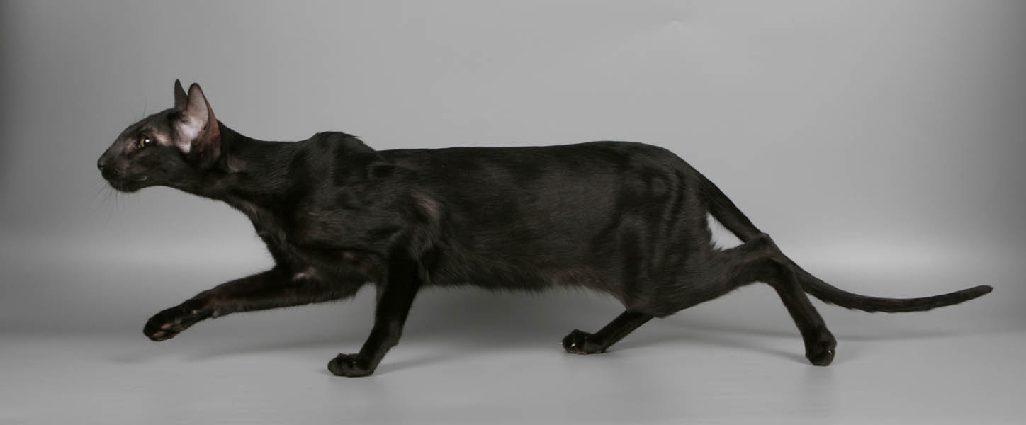 Ориентал имеет изящное и поджарое тело с хорошо развитым мышечным корсетом. Со стороны кажется, что оно грандиозно у него вытянуто в длину. Конечности у него такие же длинные и грандиозные, а лапки по сравнению с длинными ногами выглядят маленькими. Это придает фигуре аристократичность и изящество.